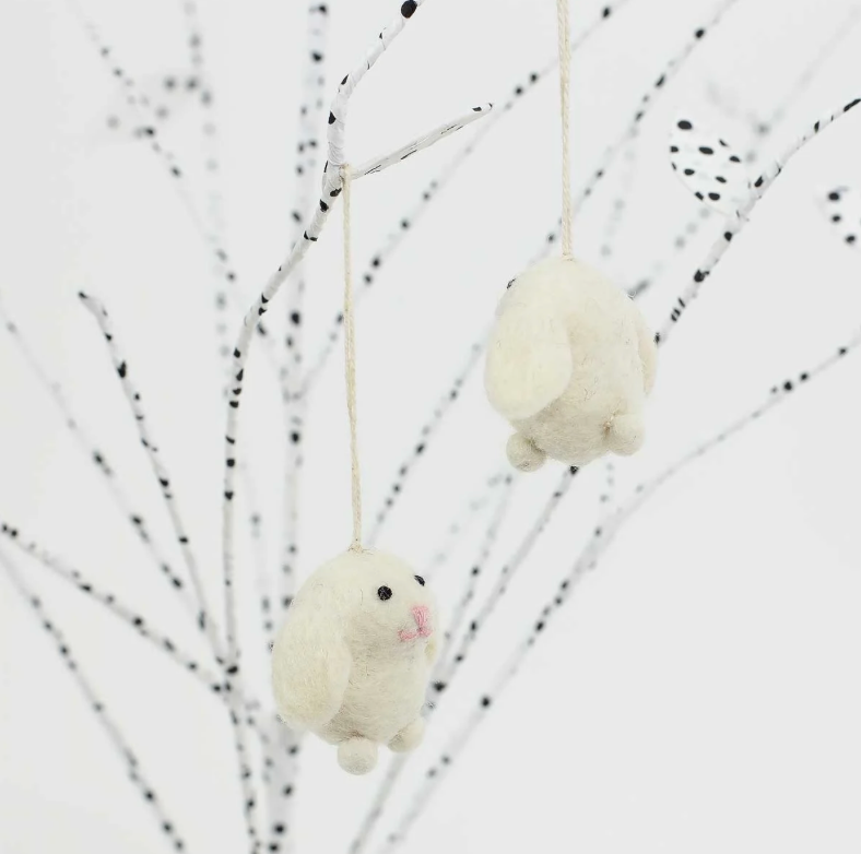 Små söta handgjorda kaniner av 100 % ull. 2 st i varje förpackning.
